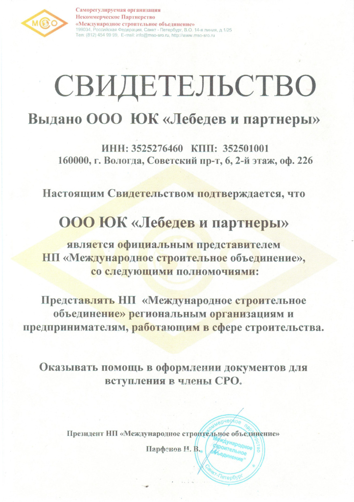 СВИДЕТЕЛЬСТВО НП "Международное строительное объединение"