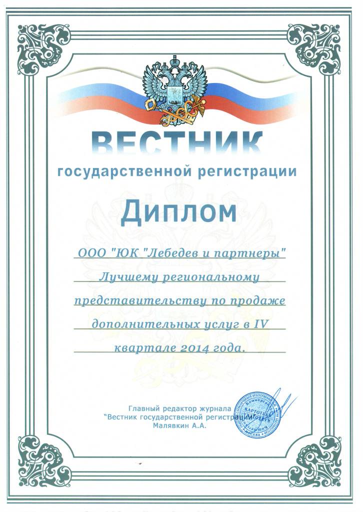 Диплом "Лучшему региональному представительству по продаже дополнительных услуг"